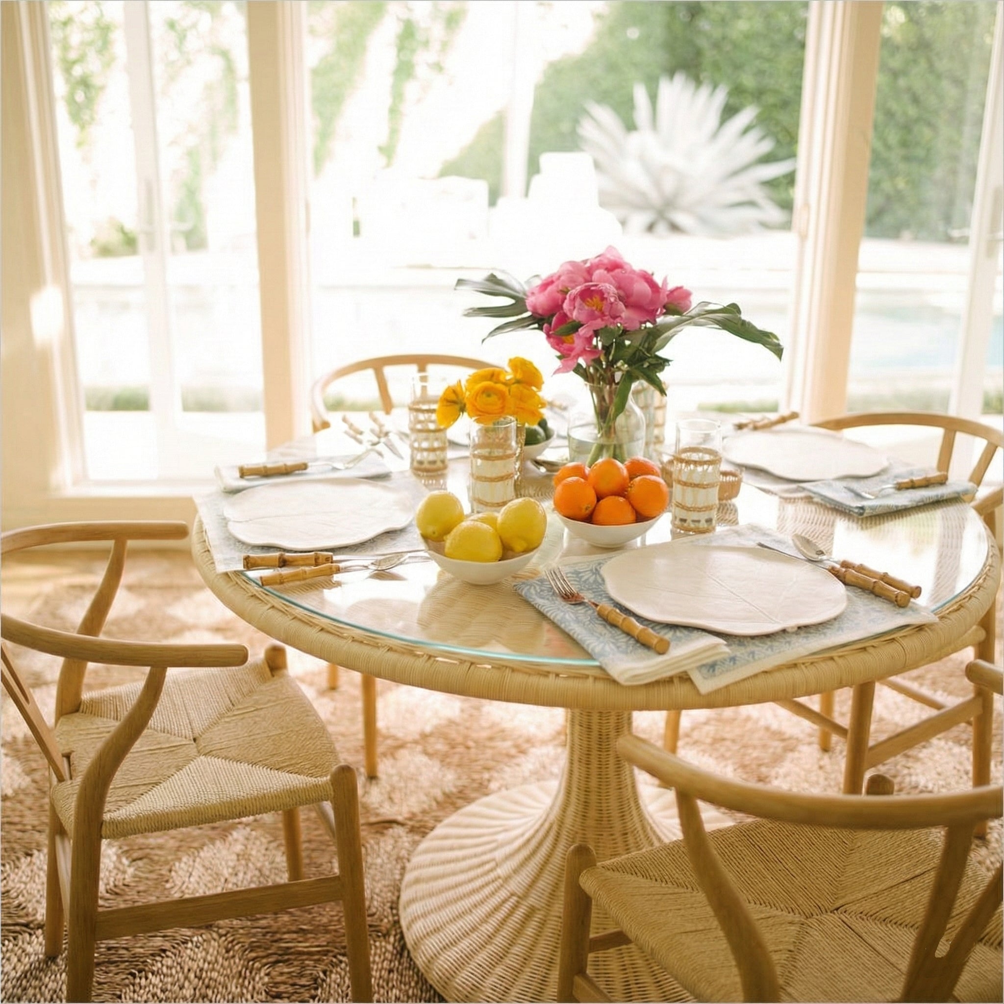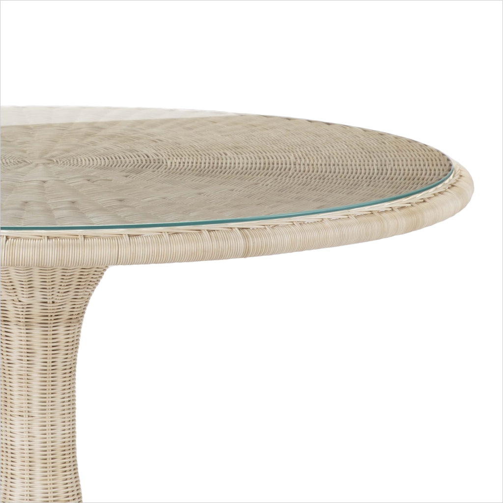 Elevate your home with the Biscayne, a fresh take on the beloved tulip table. Handcrafted from natural woven rattan, its airy silhouette brings organic character to any room while the durable tempered glass top makes everyday living effortless.
