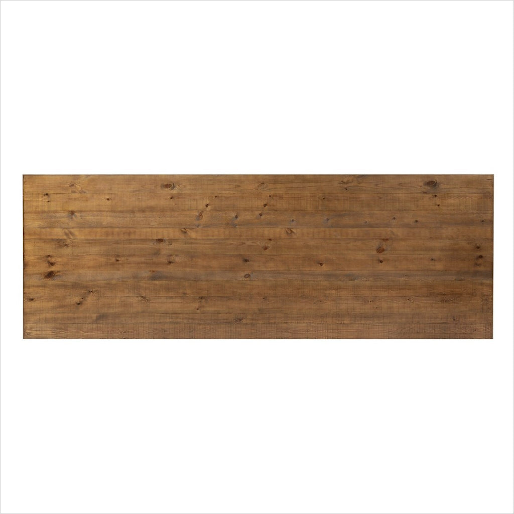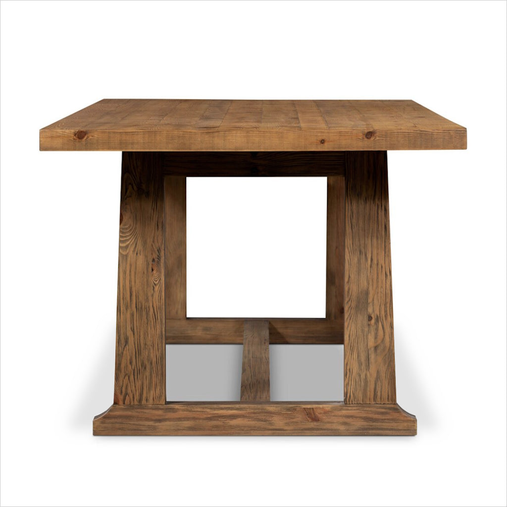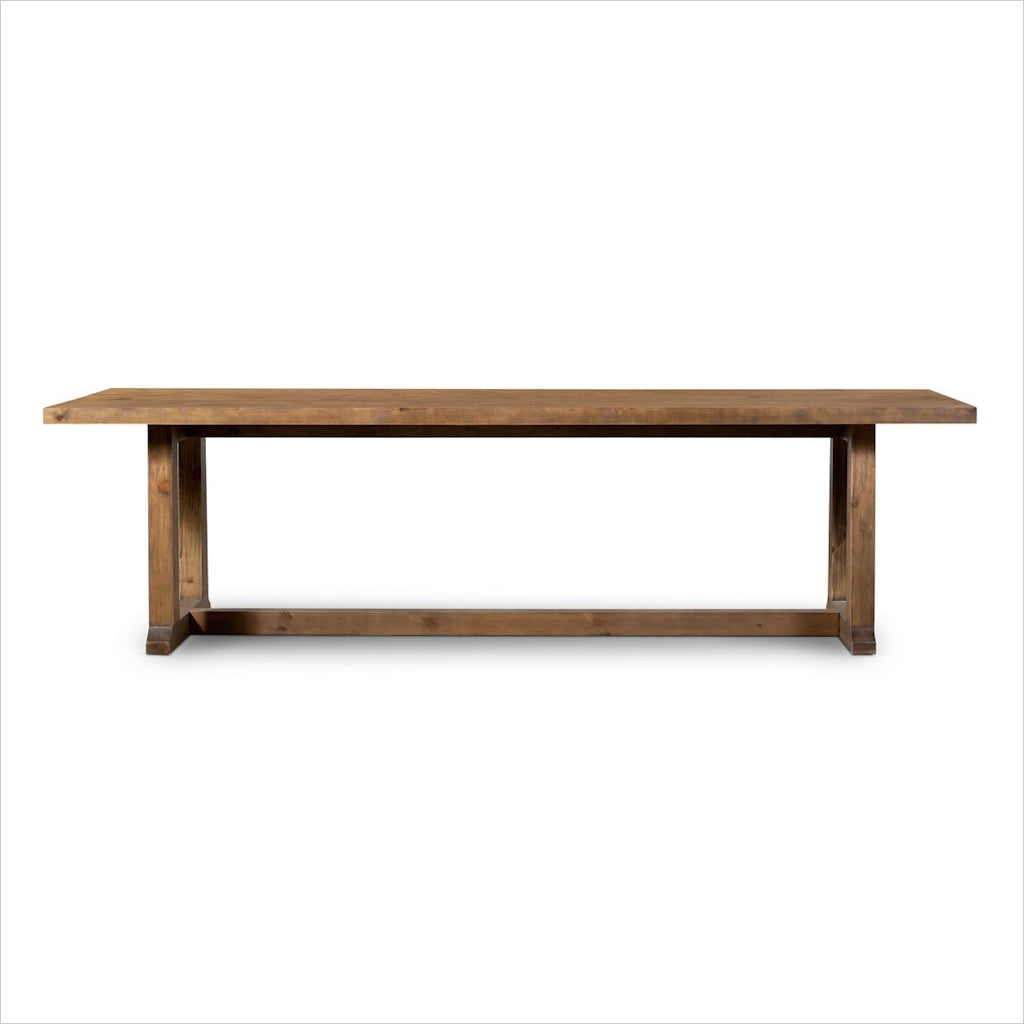 The Brookfield dining table is finished in a warm honey hue featuring a gracefully simple trestle base of solid pine. The top is waxed and bleached for a subtle weathered look. We carry this table in the 110" length. A smaller 87" length is also available to order, inquire for more details.
