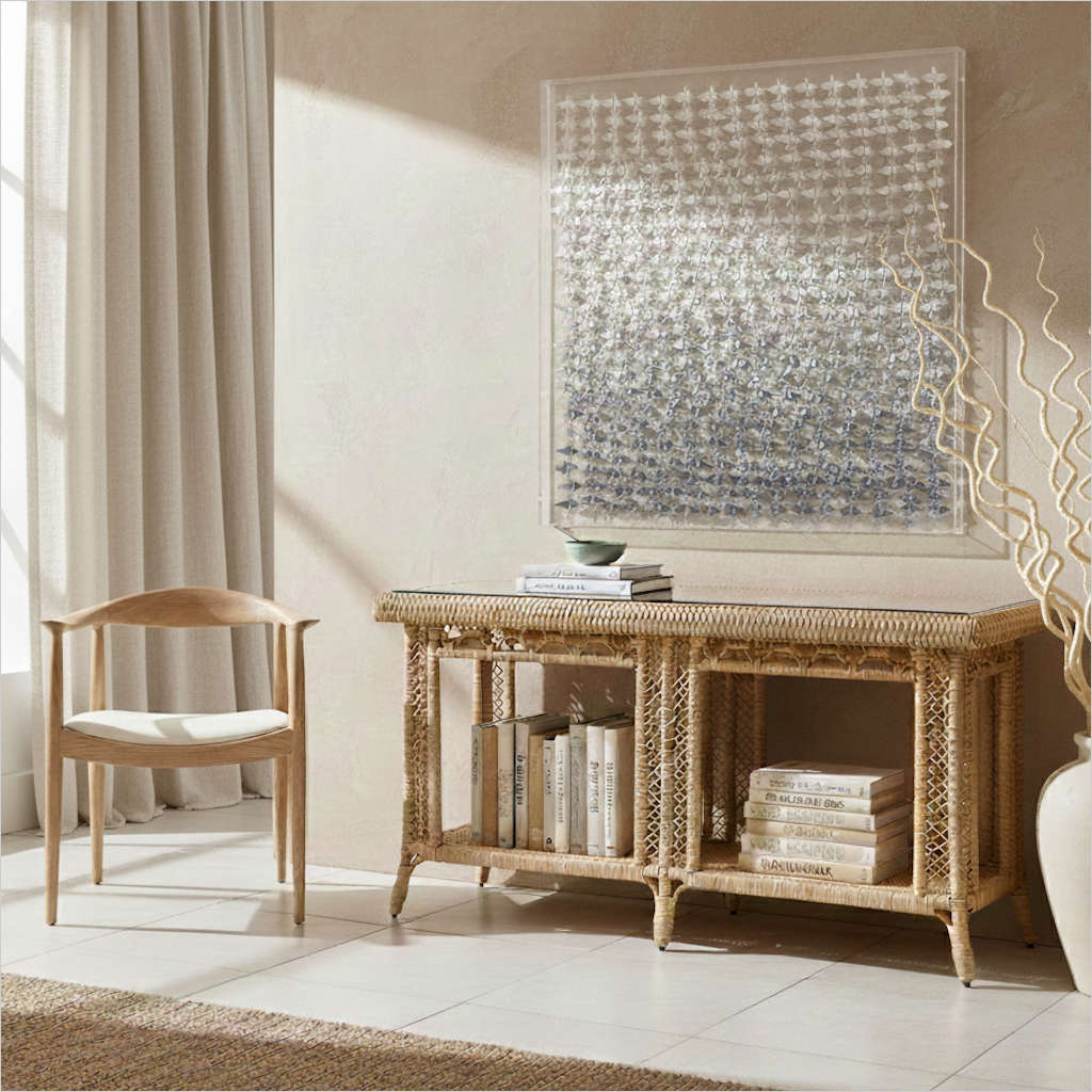 Introduce authentic character to your home with the Hope Town table, showcasing natural pole rattan using time-honored artistry. The tempered glass and a lower shelf creates a sophisticated, multi-functional piece that adapts seamlessly to your lifestyle—whether anchoring an entryway, enhancing a dining space, serving as a bar station, or complementing your living room seating.